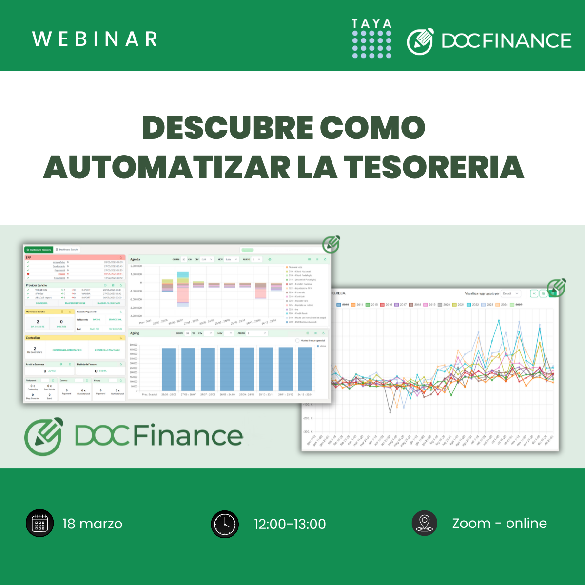 Le invitamos a nuestro próximo seminario web donde presentaremos DOCFinance, la solución con la que las empresas pueden automatizar sus procesos financieros, obtener una visión clara y actualizada de su situación económica y mejorar el control sobre los flujos de caja.